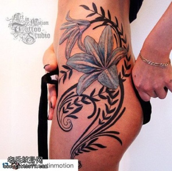 清新花朵腿部纹身图案图片_植物纹身图案大全_纹身图吧
