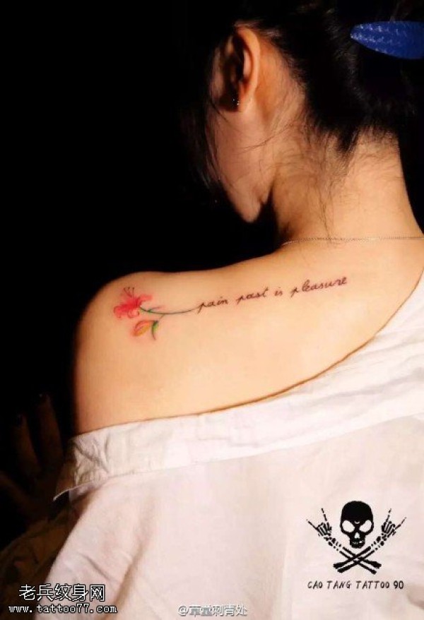 女生肩花纹身_15张女性双肩对称的肩花纹身图案作品图片
