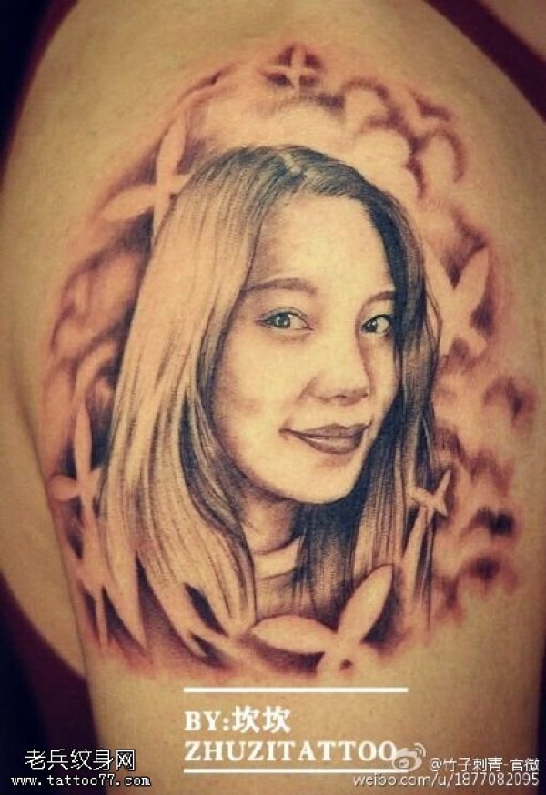 女性肩部肖像刺青_肖像纹身图案大全_纹身图吧
