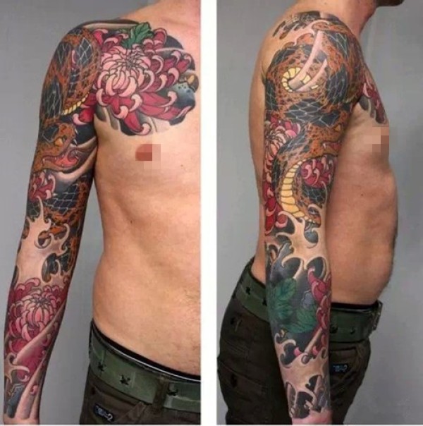 手臂莲花蛇纹身图案_臂部纹身图案大全_纹身图吧