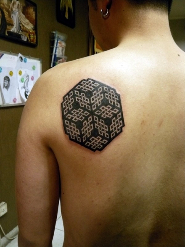 男性背部帅气的部落图腾纹身图案