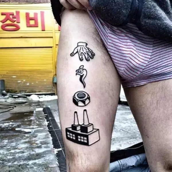 花腿纹身--一组大黑腿纹身图案作品欣赏