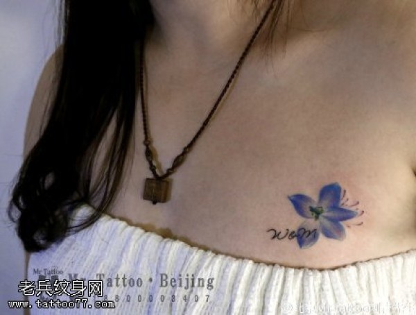 胸前一朵小兰花纹身图案