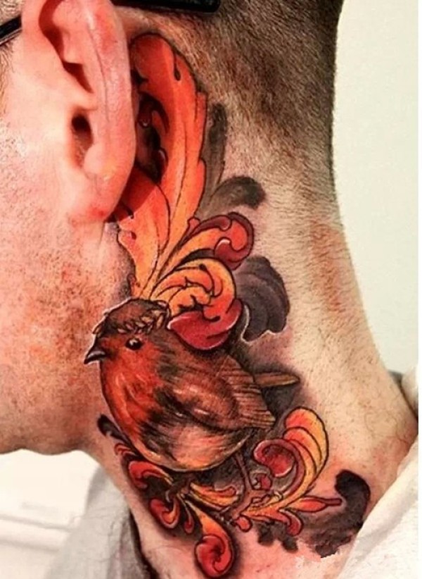 男人脖子彩色燕子刺青图案图片_脖子纹身图案大全_纹身图吧