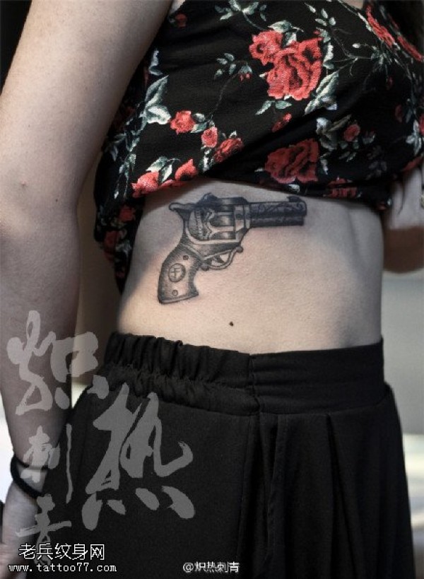 分享一款腰部时尚性感的蝶恋花纹身图案_腰部纹身图案大全_纹身图吧