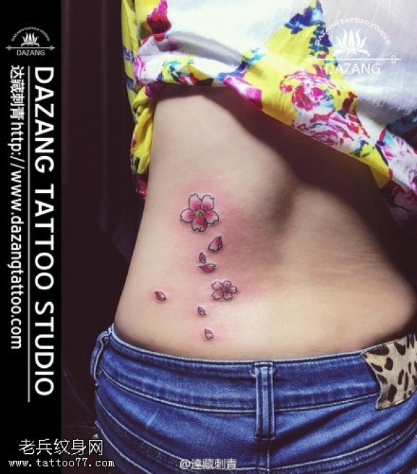 女性腰部莲花花纹刺青_腰部纹身图案大全_纹身图吧