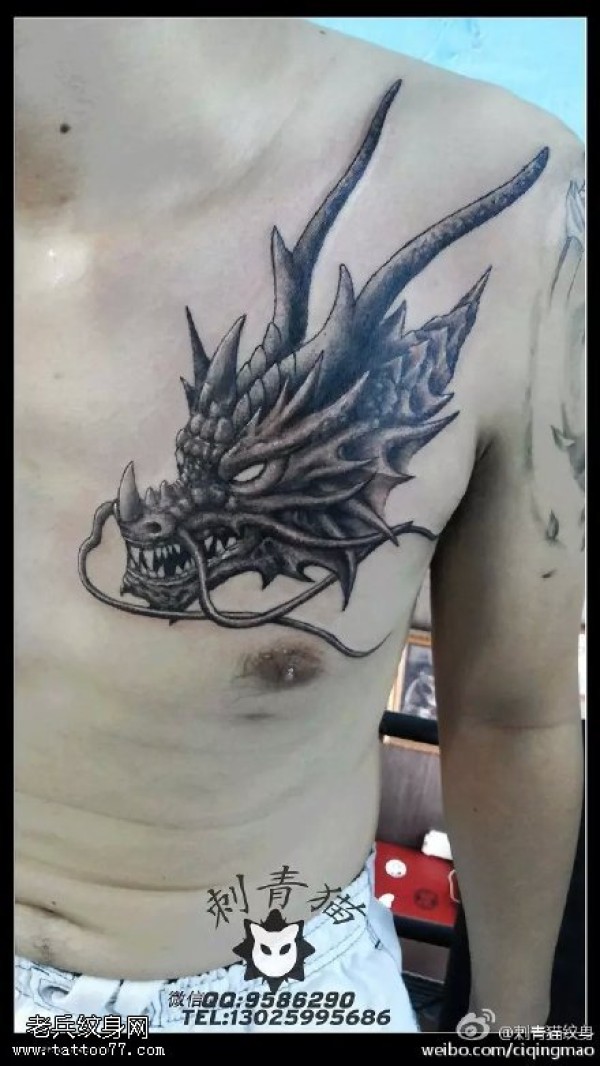 肩膀上的龙头纹身图案