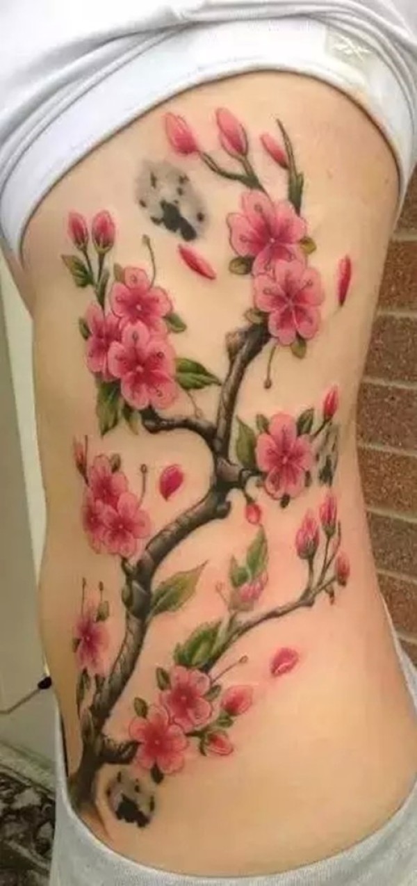 分享一款腰部时尚性感的蝶恋花纹身图案_腰部纹身图案大全_纹身图吧
