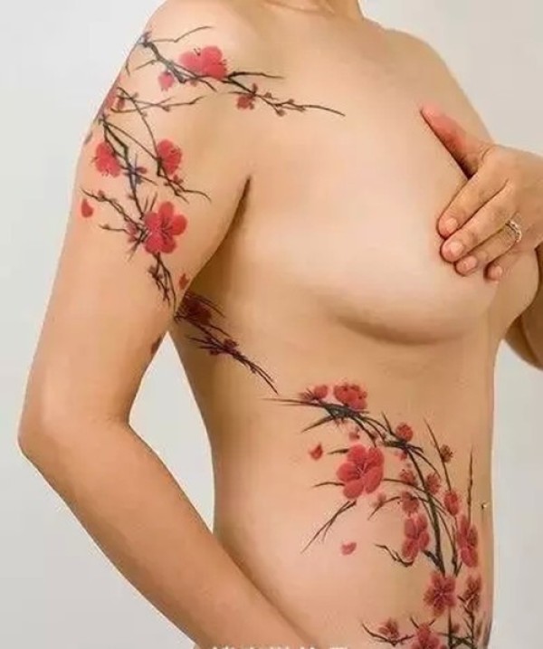 分享一款腰部时尚性感的蝶恋花纹身图案_腰部纹身图案大全_纹身图吧
