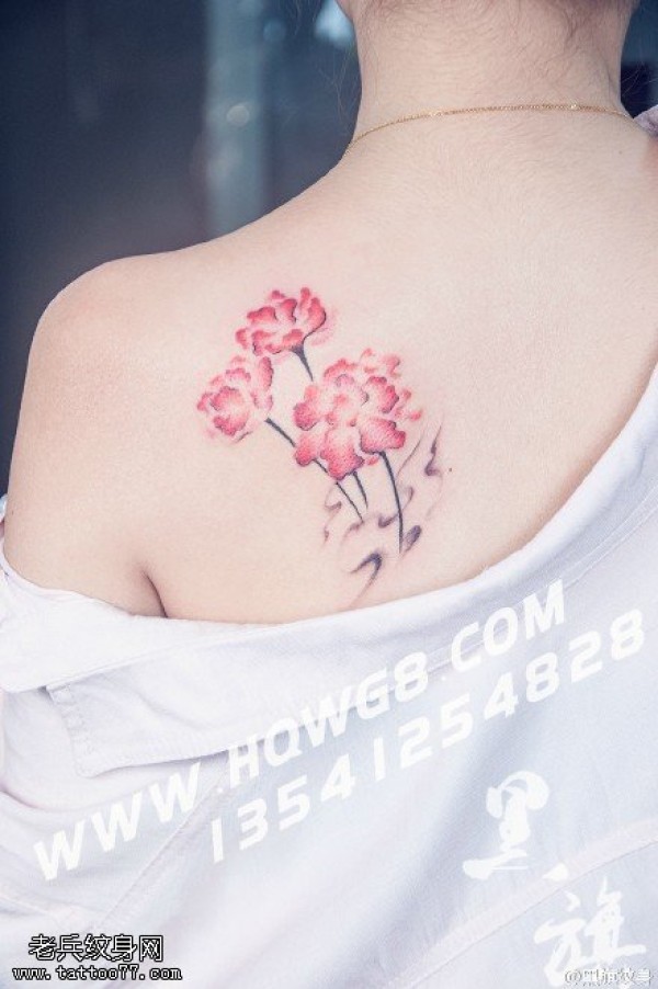 女性肩膀上多款漂亮的花朵纹身图案