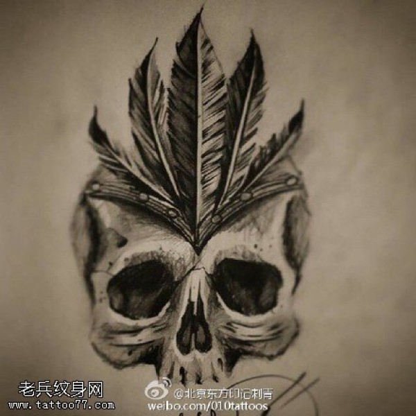 背部骷髅羽毛纹身图案