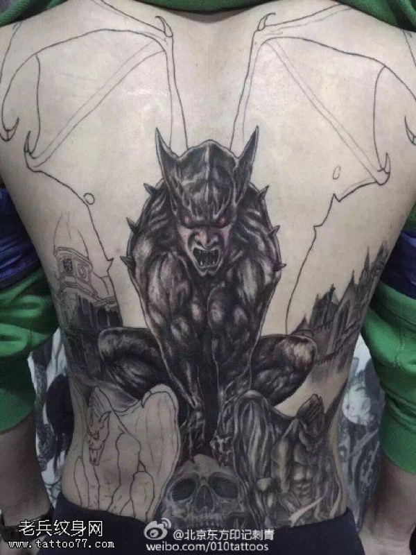 满背点刺恶魔纹身图案