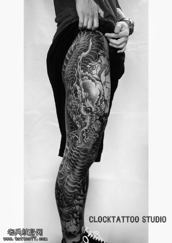 花腿纹身--一组大黑腿纹身图案作品欣赏