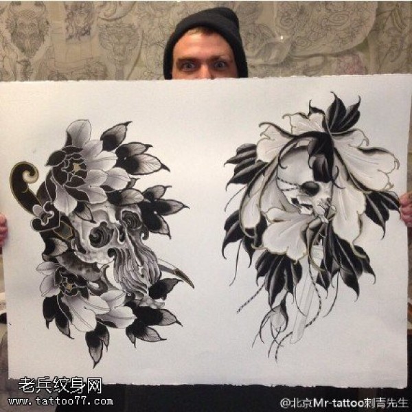 能面万媚纹身手稿_52张日式能剧面具纹身手稿图案素材欣赏