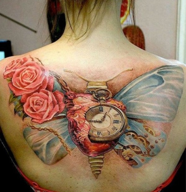 背部大气钟表纹身