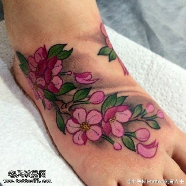 清新小桃花脚踝纹身_脚部纹身图案大全_纹身图吧