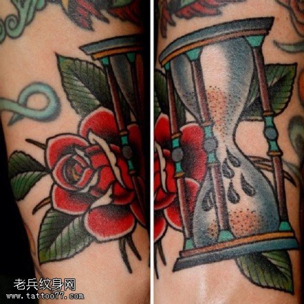 精美花卉沙漏纹身图案