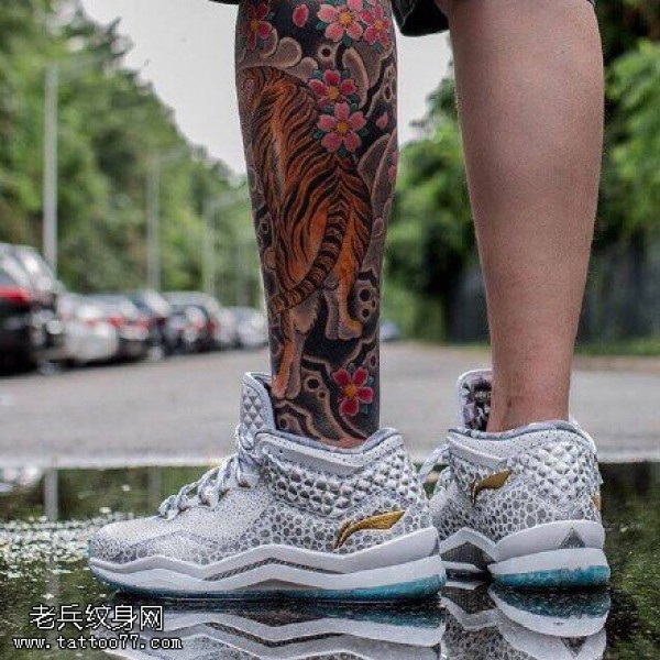传统花腿纹身--18张传统风格的大花腿纹身图案作品