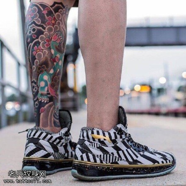 传统鲤鱼花小腿纹身_腿部纹身图案大全_纹身图吧