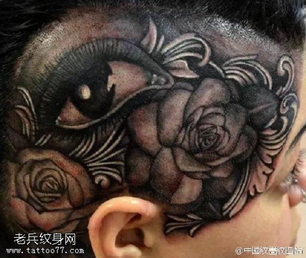 霸气男头部时尚纹身图片_头部纹身图案大全_纹身图吧