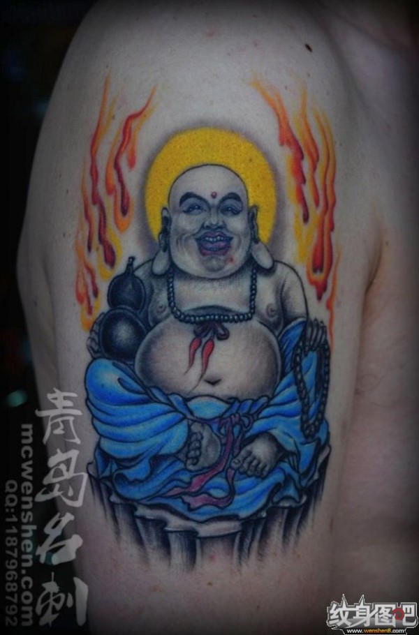 青岛名刺纹身作品【弥勒佛】QQ;1187968792