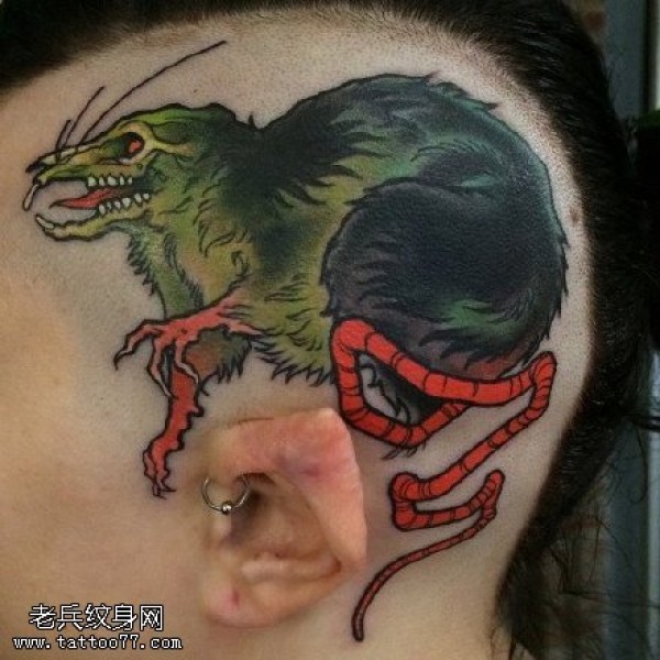 头部的老鼠骷髅纹身图案