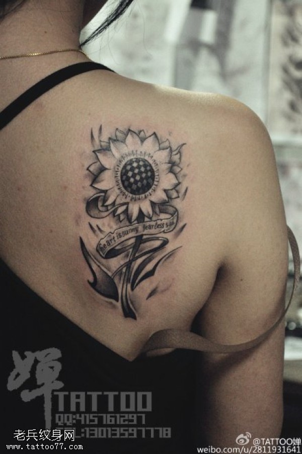 草图感向日葵纹身图案_植物纹身图案大全_纹身图吧