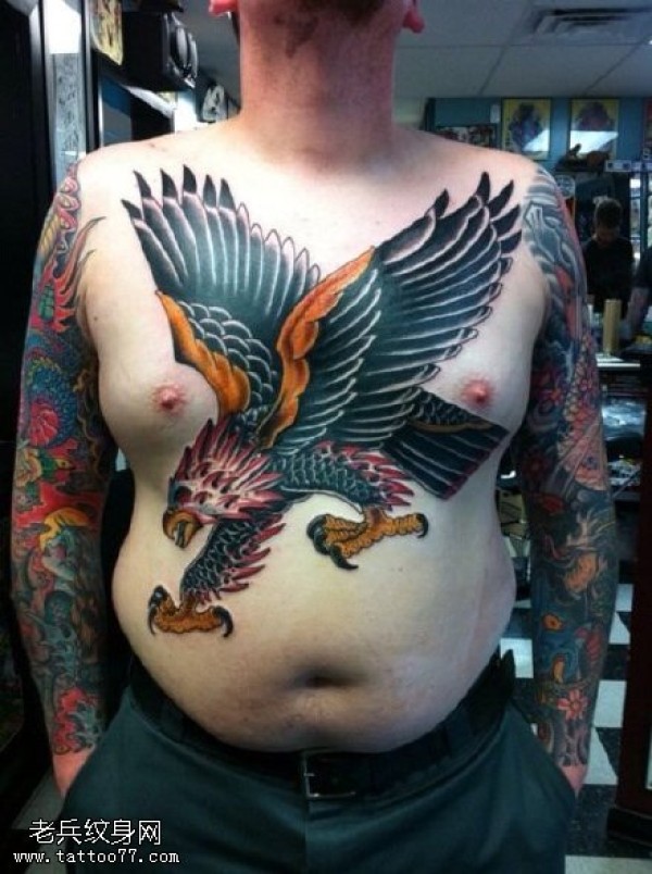 胸前的大老鹰纹身图案