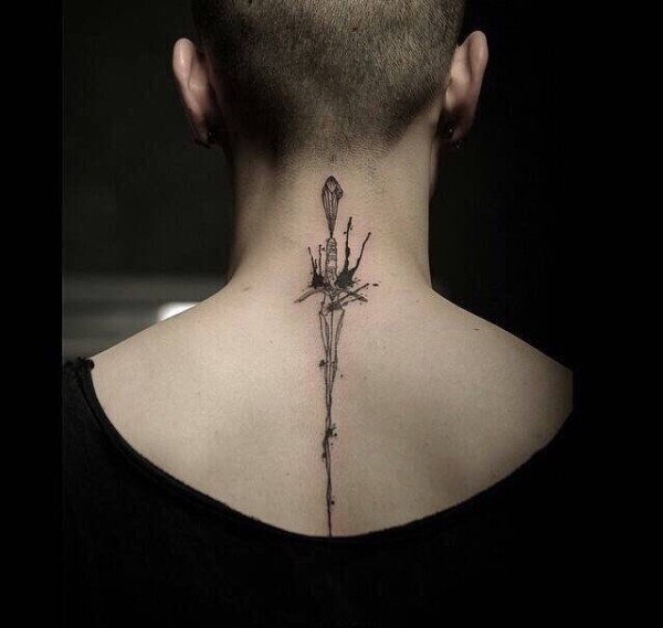 后颈部纹身小图--9张女生脖子后颈处的简约纹身图案