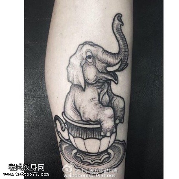 小腿点刺小象纹身图案
