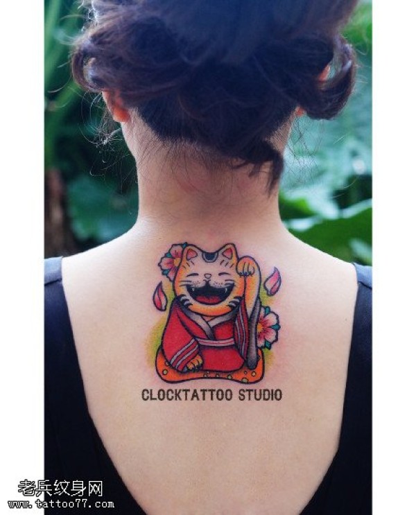日本风招财猫纹身图案