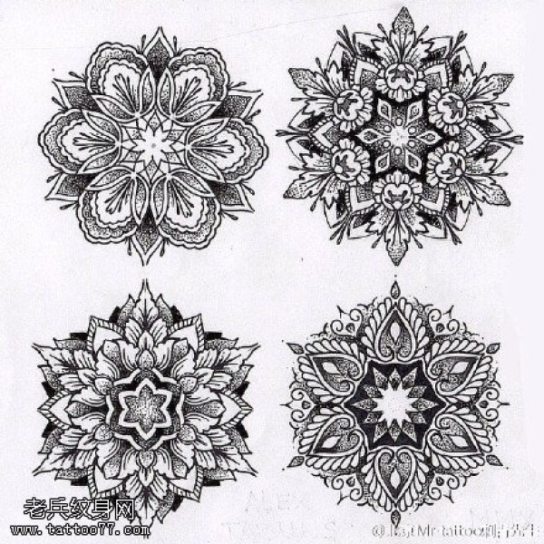 曼陀罗点刺梵花_100张曼陀罗点刺梵花纹身手稿图案