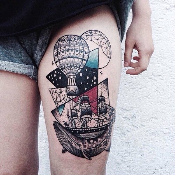 传统花腿纹身--18张传统风格的大花腿纹身图案作品