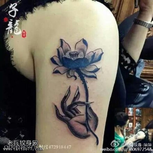 女生肩花纹身_15张女性双肩对称的肩花纹身图案作品图片