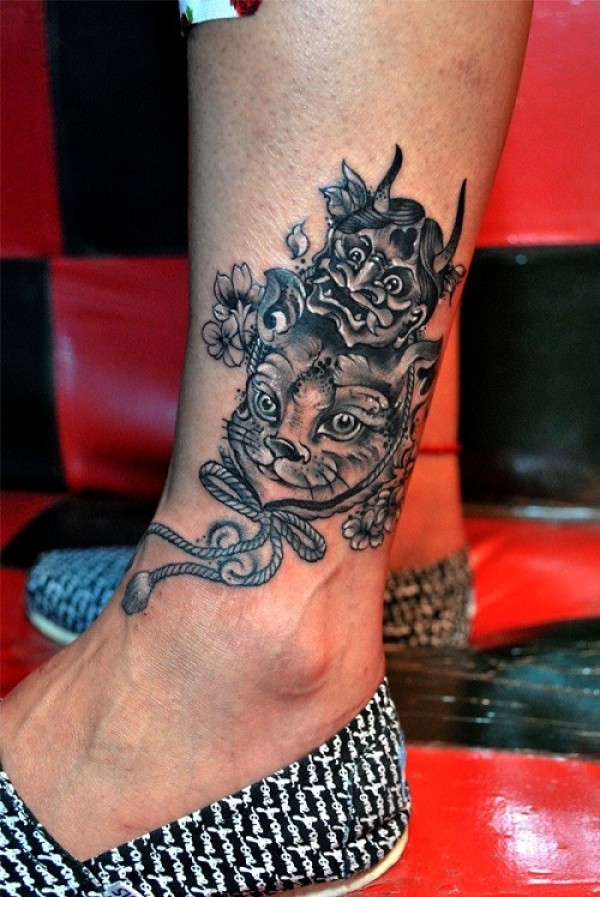 可爱萌老虎脚踝纹身_脚部纹身图案大全_纹身图吧