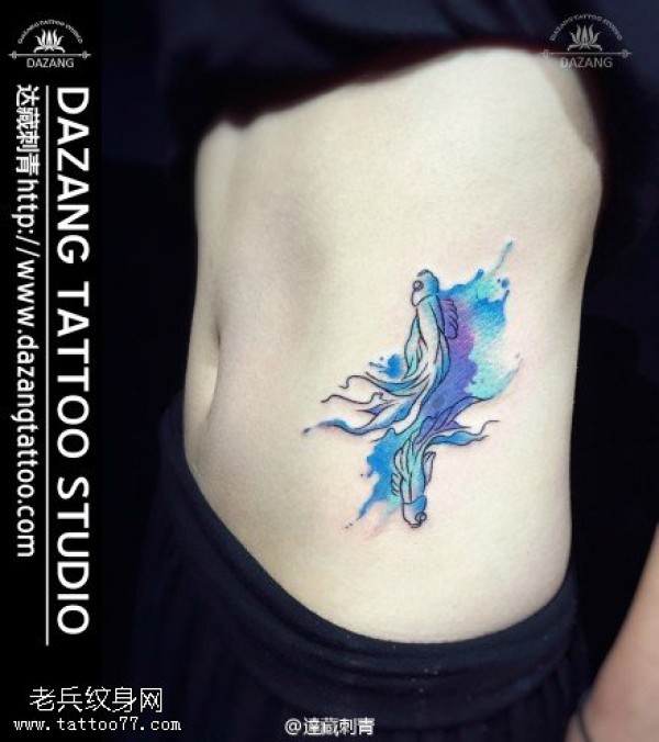 分享一款腰部时尚性感的蝶恋花纹身图案_腰部纹身图案大全_纹身图吧