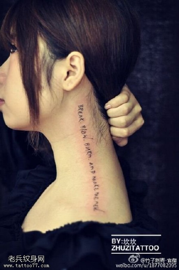 颈部经典的字符纹身图案