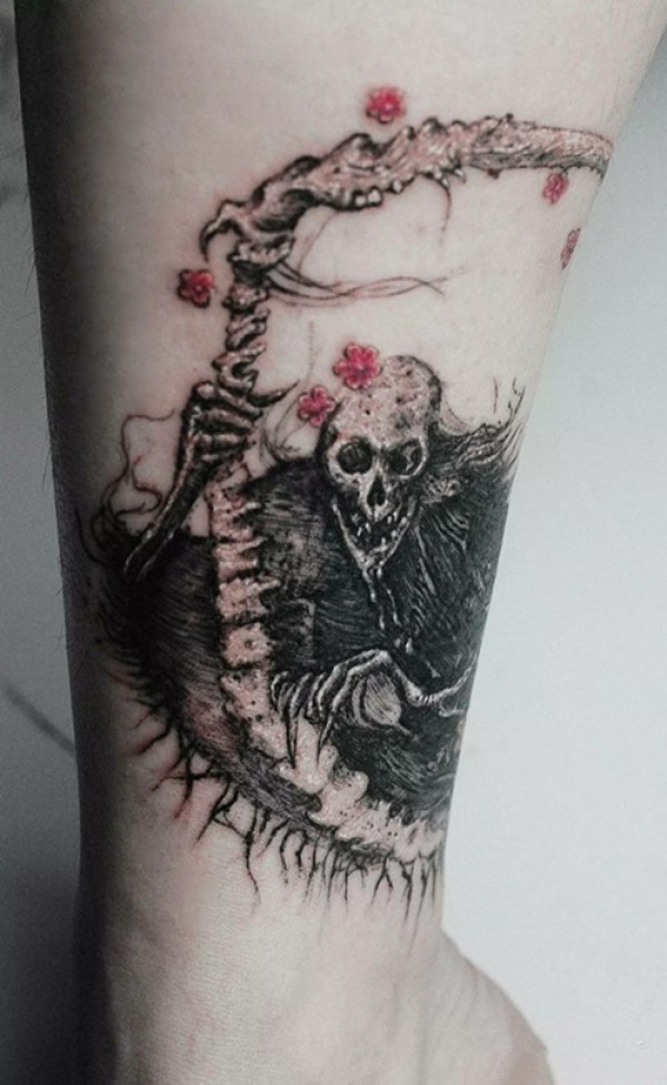 男生小腿死神纹身_腿部纹身图案大全_纹身图吧