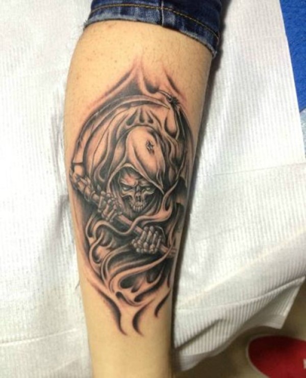 男生小腿死神纹身_腿部纹身图案大全_纹身图吧