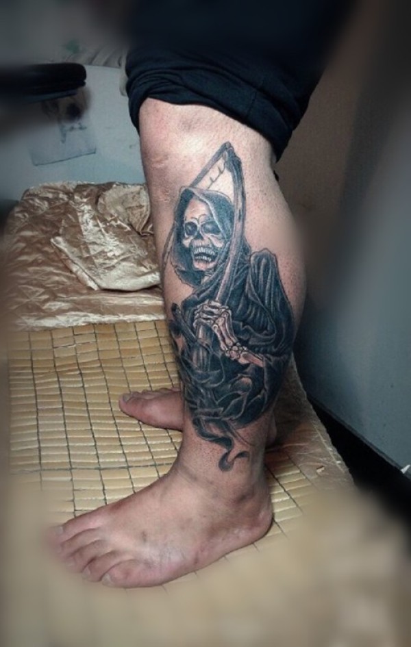 男生小腿死神纹身_腿部纹身图案大全_纹身图吧