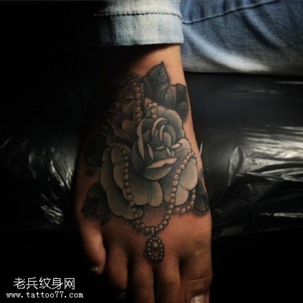 脚上的珍珠玫瑰纹身图案