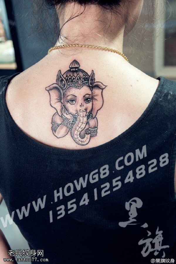 背部的小象纹身图案