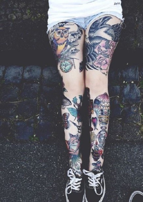 女孩腿部唯美刺青_腿部纹身图案大全_纹身图吧