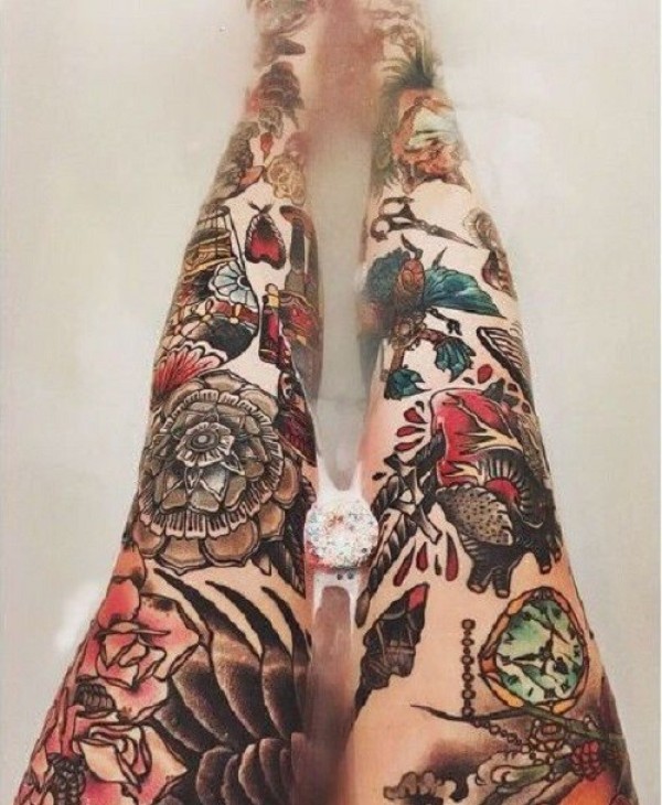 传统花腿纹身--18张传统风格的大花腿纹身图案作品