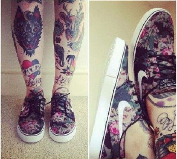 花腿纹身--一组大黑腿纹身图案作品欣赏