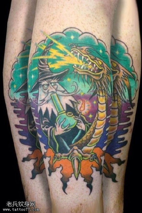 花腿纹身--一组大黑腿纹身图案作品欣赏