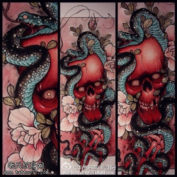 手稿蛇骷髅纹身图案