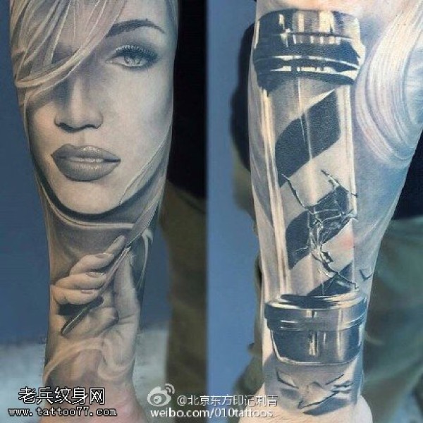 手臂逼真的3D肖像纹身图案