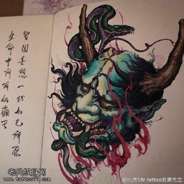 能面万媚纹身手稿_52张日式能剧面具纹身手稿图案素材欣赏