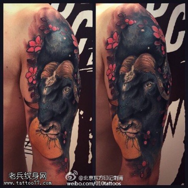 女生肩花纹身_15张女性双肩对称的肩花纹身图案作品图片